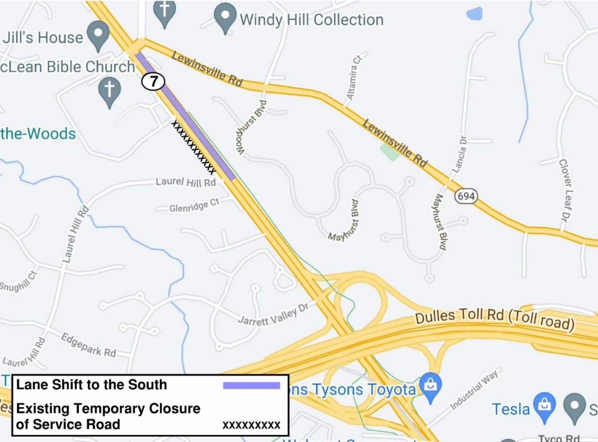MCLEAN - Starting on or about Thursday, Feb. 10, drivers on westbound Route 7 will experience a lane shift to the south (towards the median) between Laurel Hill Road and Lewinsville Road as crews perform utility work under Route 7.